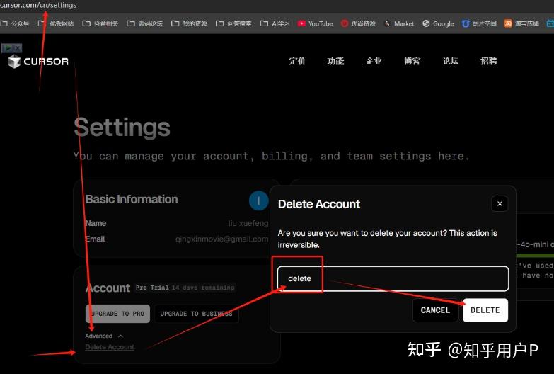 - 删除账号,点击按钮会自动打开网页,手动删除即可。