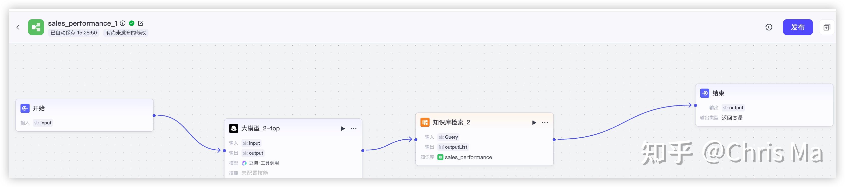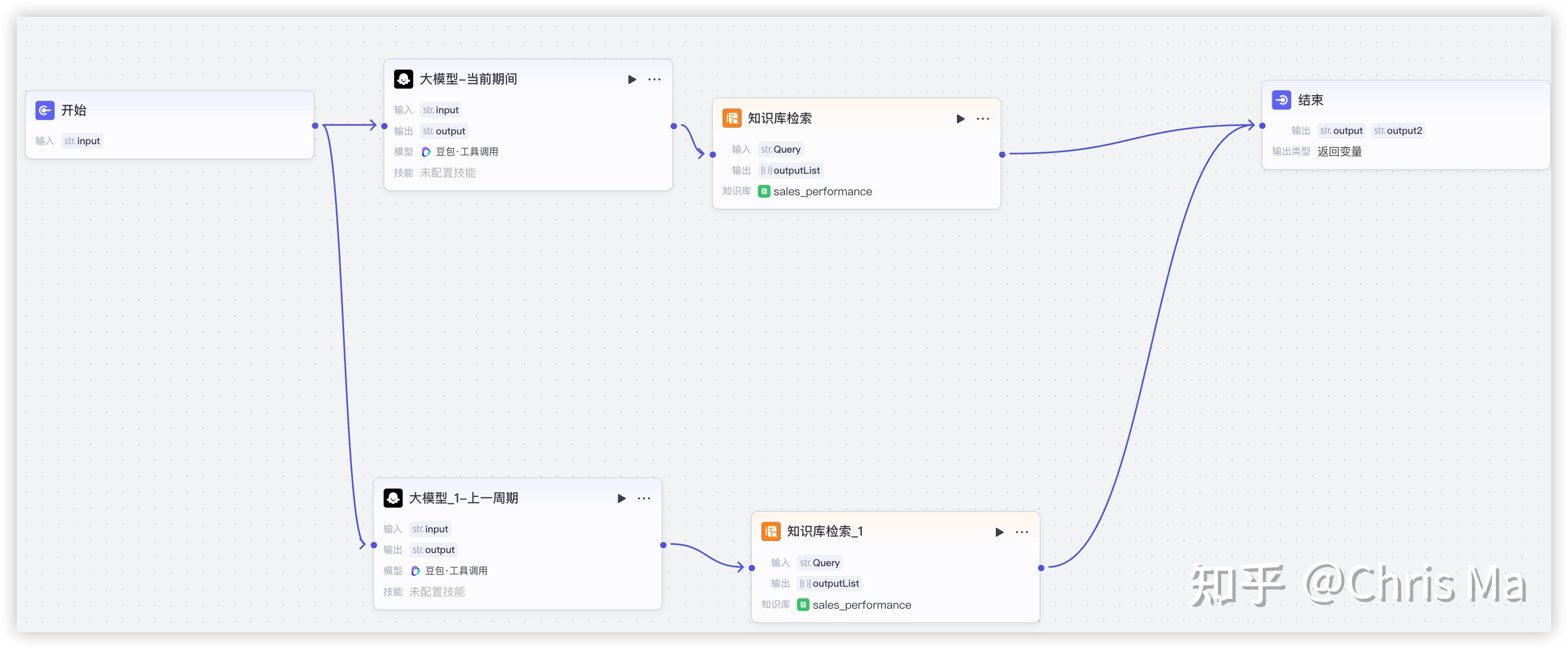 再加上一个结束节点,处理排名相关信息的工作流就算是完成了。接下来我们看一下,处理常规查询的工作流workflow:sales_performance_2