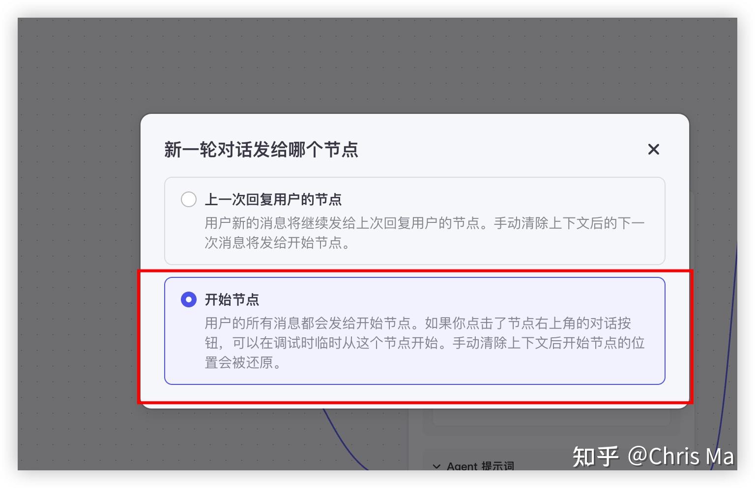 - 会话结束后,下一次会话从哪个节点开始。点击下方进行设置。我们这个案例中,因为不知道用户下次输入的查询是关于排名的还是常规查询的,因此我们设置每次都从判断节点开始