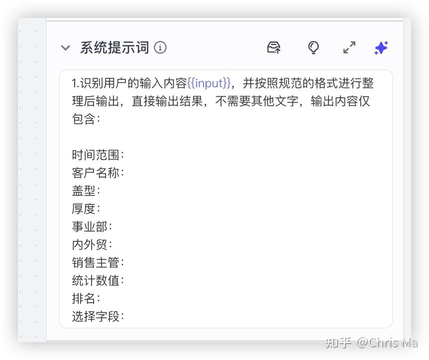 其次,我们要有一些系统提示词和用户提示词给到这个节点的大模型。