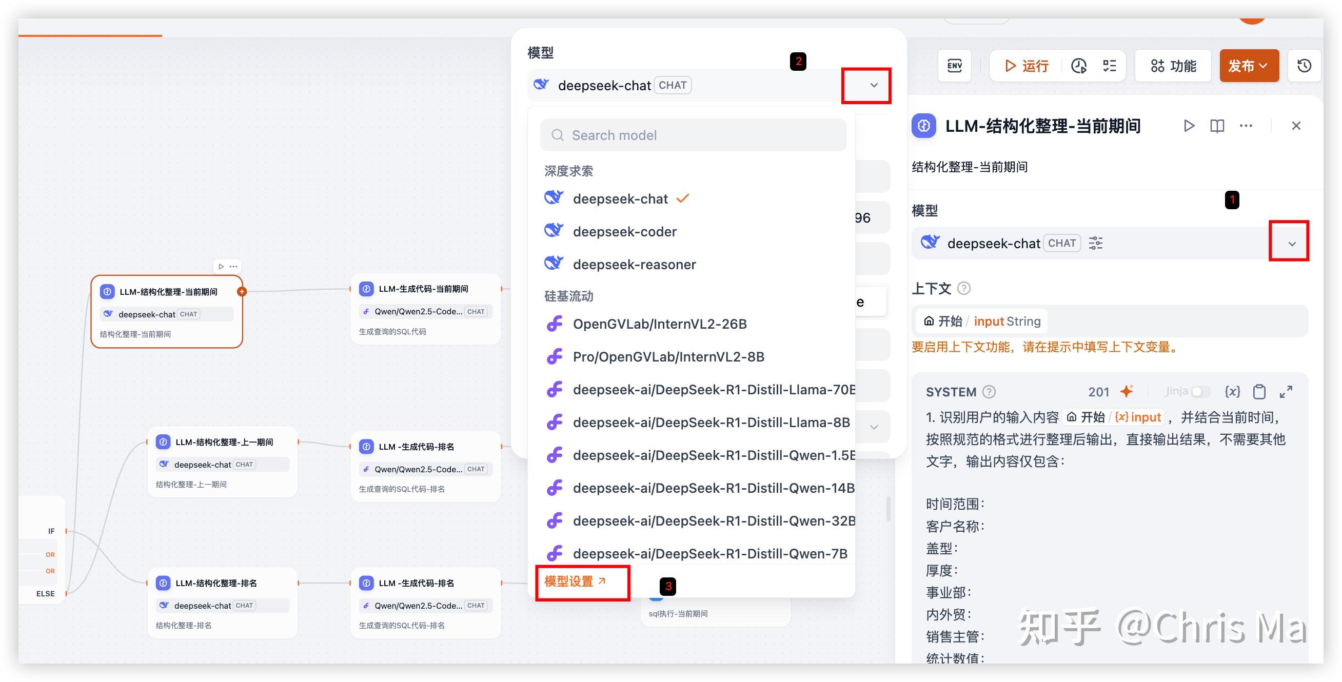 2.调用LLM coder大模型,生成SQL代码,也就是3个节点:LLM-生成代码
