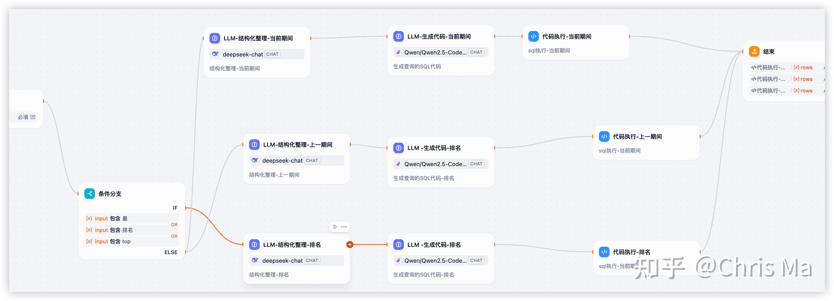 上文说过,在DIFY中,我将查询当前期间结果,上一期间结果和排名信息结果这三个分支处理在一个工作流中。