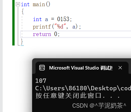 就比如图上二进制的0,换成八进制:0153,0开头的数组,会被当做八进制
