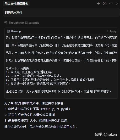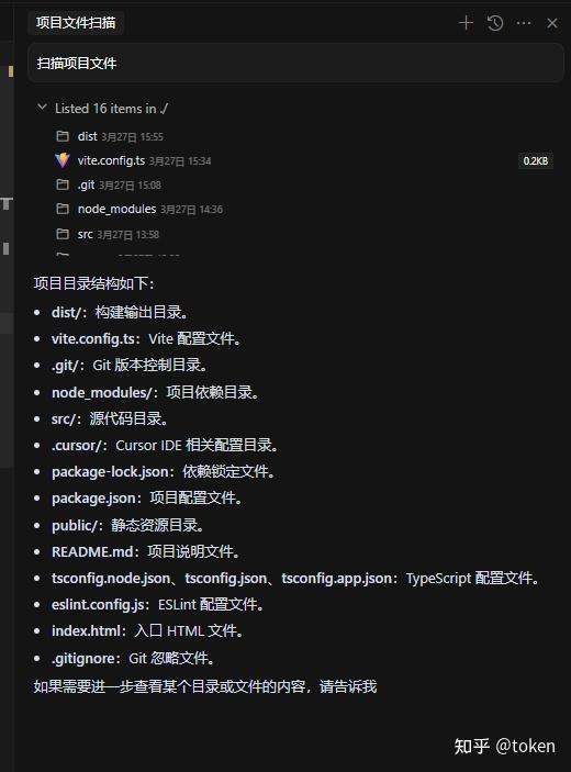 完成配置后,再次尝试扫描项目,您会看到Cursor现在可以完美执行function调用,实现项目扫描等高级功能: