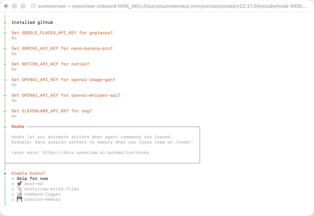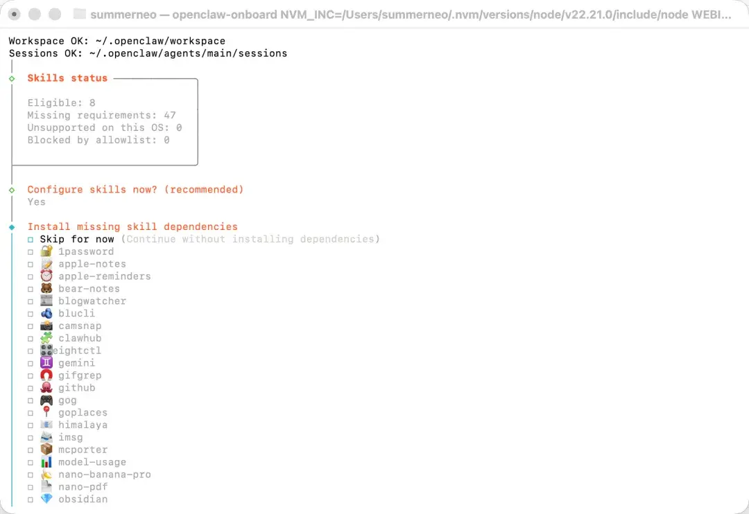 接下来,让你选择哪个 Skills ,按上下键点击空格是选择,提交是 enter 键。