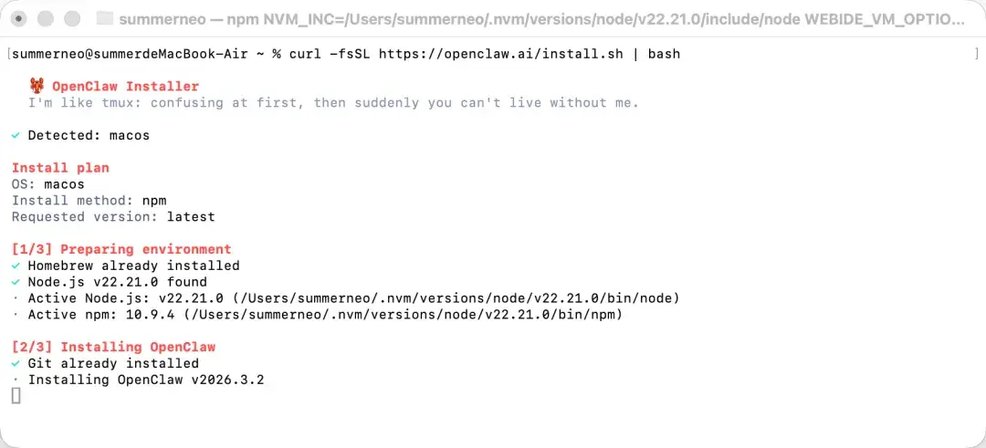 在 macOS 12 及以上系统 的 Mac 电脑上,只要安装好 Node.js 20+、Git 和 Homebrew,基本就可以正常安装和运行 OpenClaw(推荐 M 系列芯片 + 16GB 内存 体验更好)。
