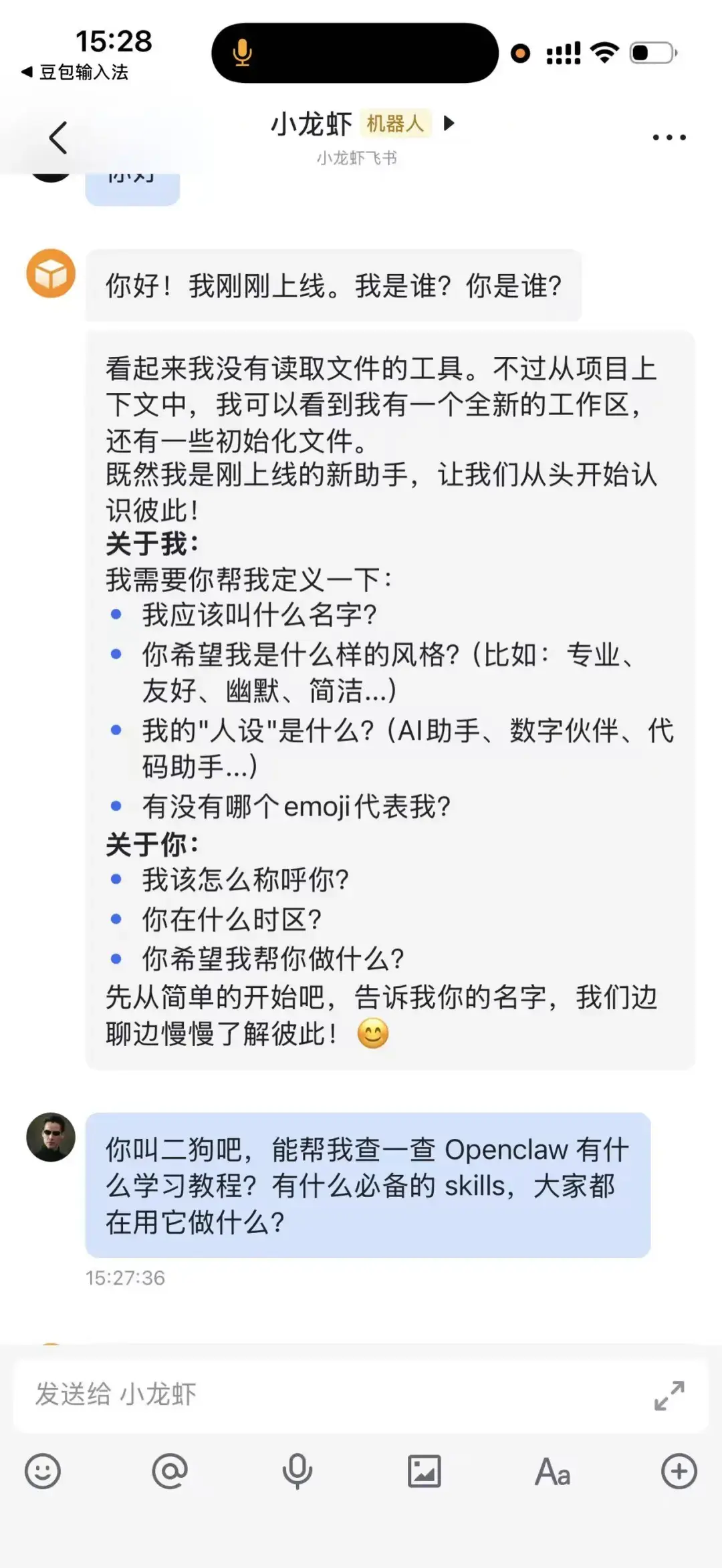 配置完成后,你就可以在飞书上和你的小龙虾愉快的交流了,手机端更方便一些。