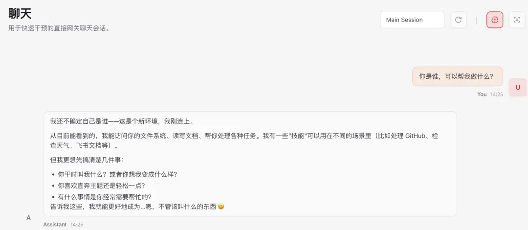 然后就可以愉快的,在网页端和你的小龙虾聊天了,让它成为你真正的 Ai 数字助手!