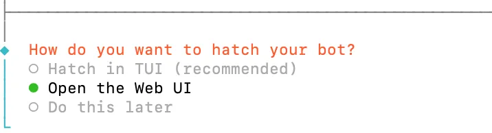 这个界面是在问你“你想怎么启动(hatch)你的机器人(bot)?”。意思是你现在配置好了 bot,要选择一个方式让它运行或访问。