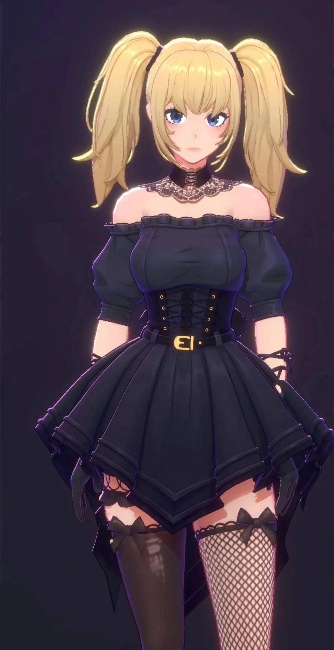 金毛,双马尾,颈环,蕾丝,哥特风小裙子,丝袜,二次元的味道浓的要溢出来了。