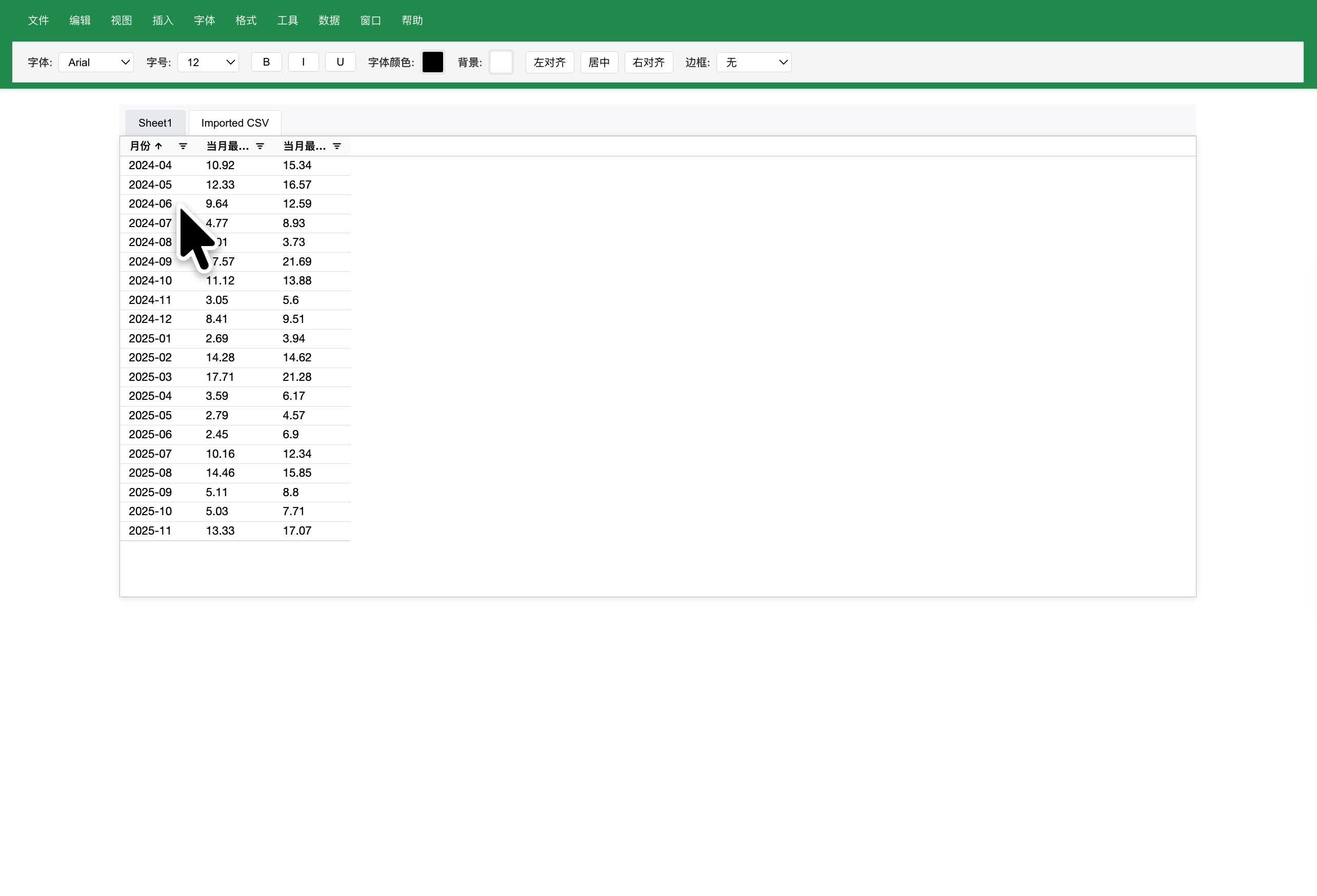 通过Doubao-Seed-Code复刻的Excel,可实现公式计算、数据导入、排序、图表生成等核心功能