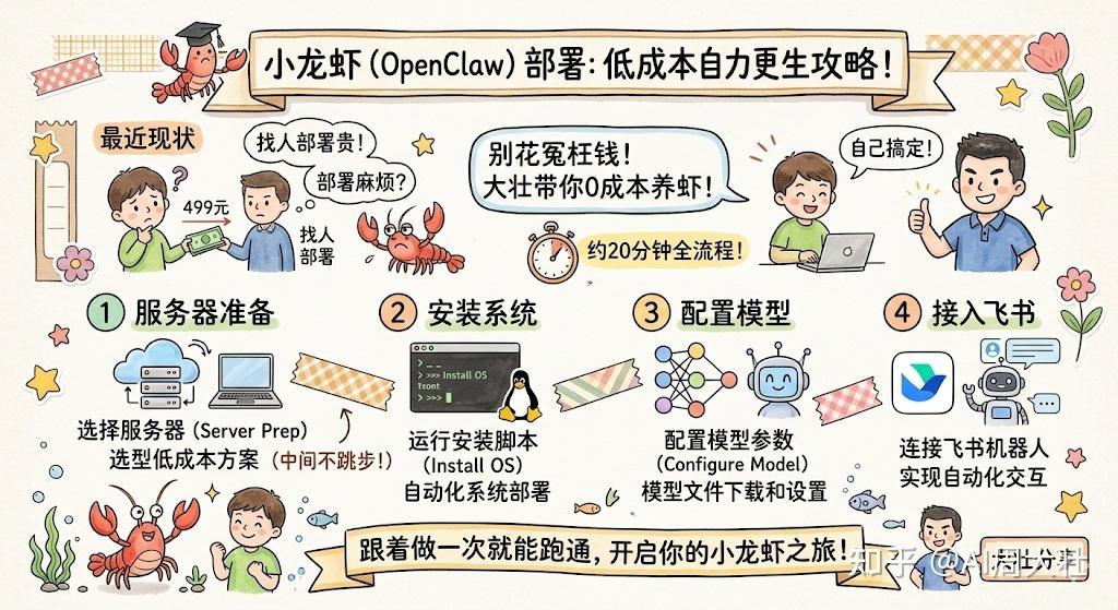 从服务器、装系统、配模型,到接入飞书机器人,一步一步走,中间不跳步,跟着做一次就能跑通,整个过程大概需要 20 分钟。