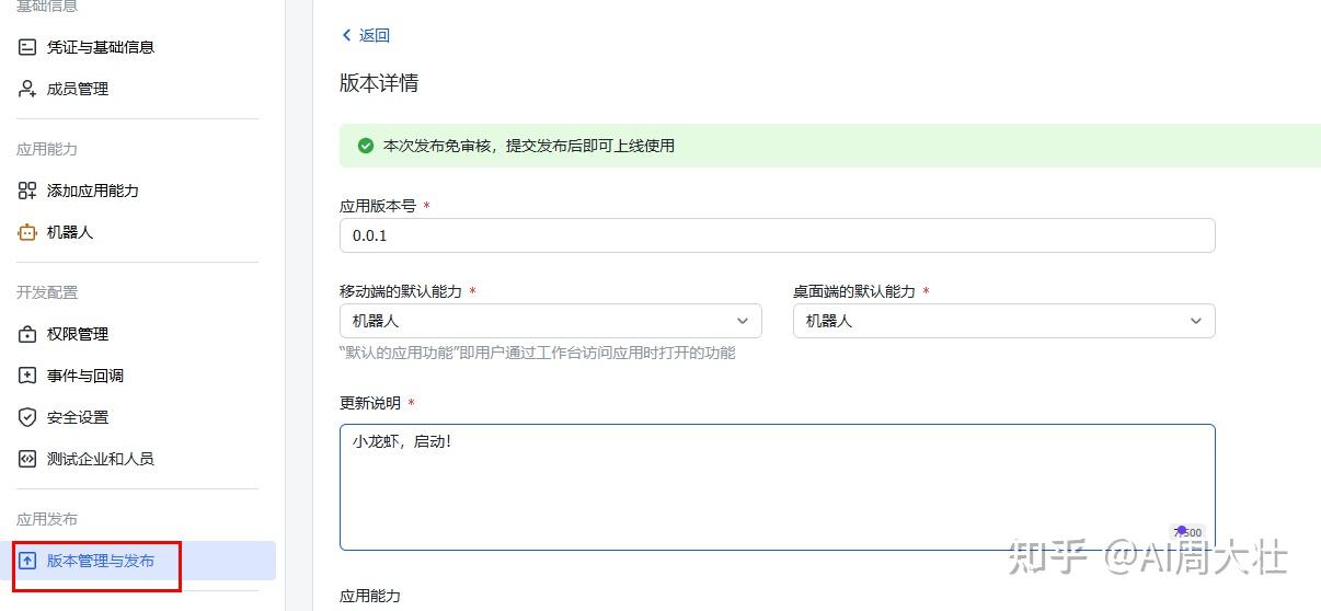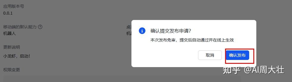 版本号是以 x.x.x 的方式进行填写,填写好信息后,点击“保存”后,点击“确认发布”进行发布。