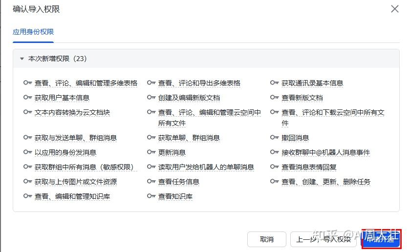 默认应用没有任何权限,这样我们的小龙虾啥都做不了,所以需要给它配置相应权限。