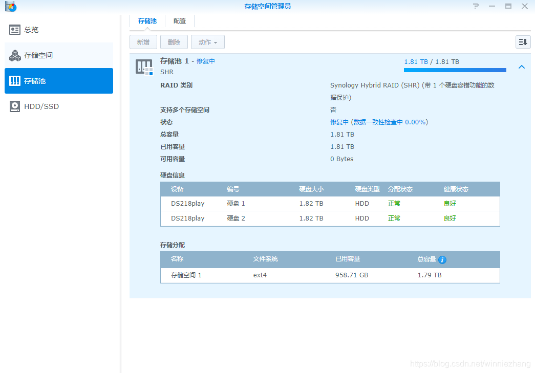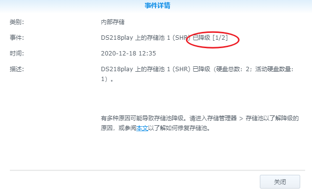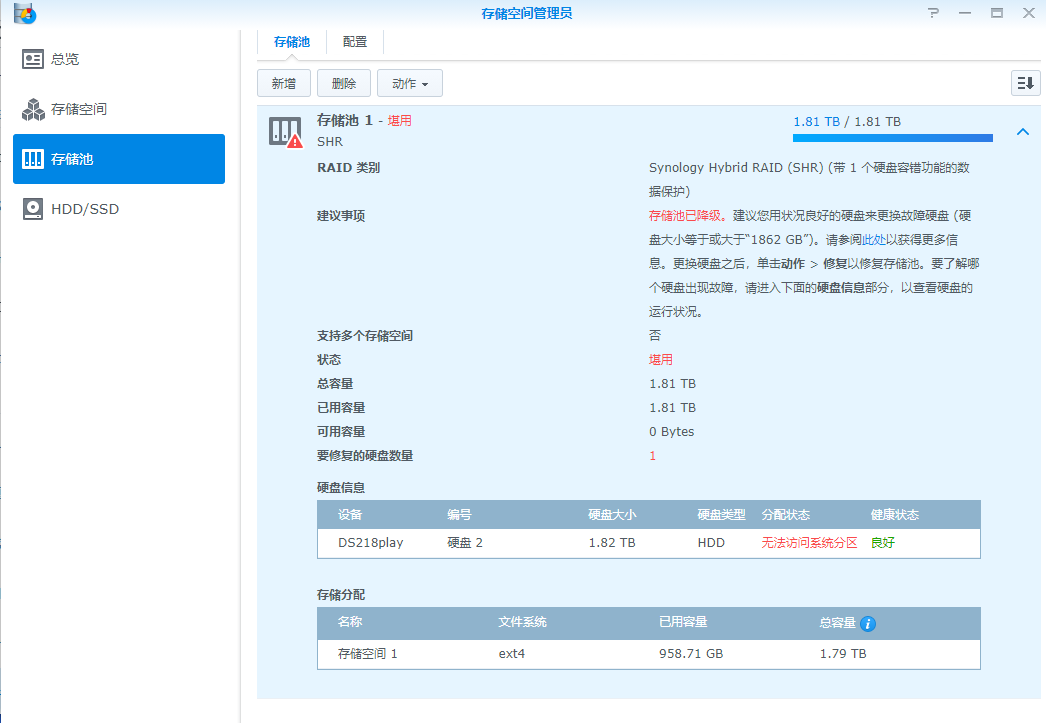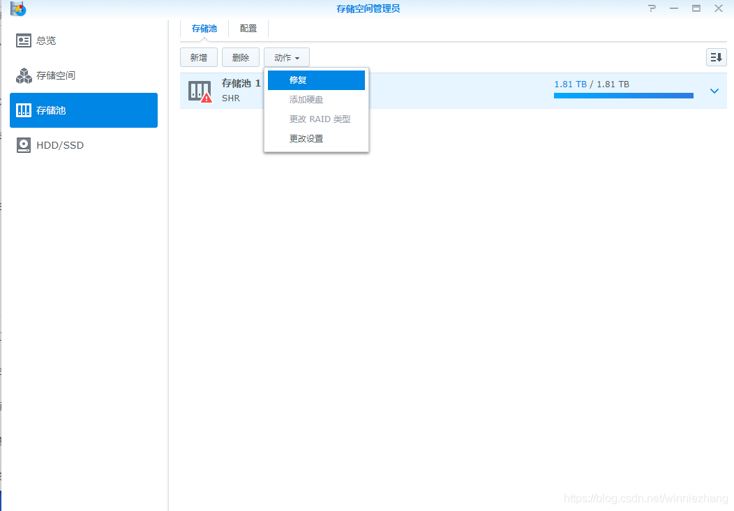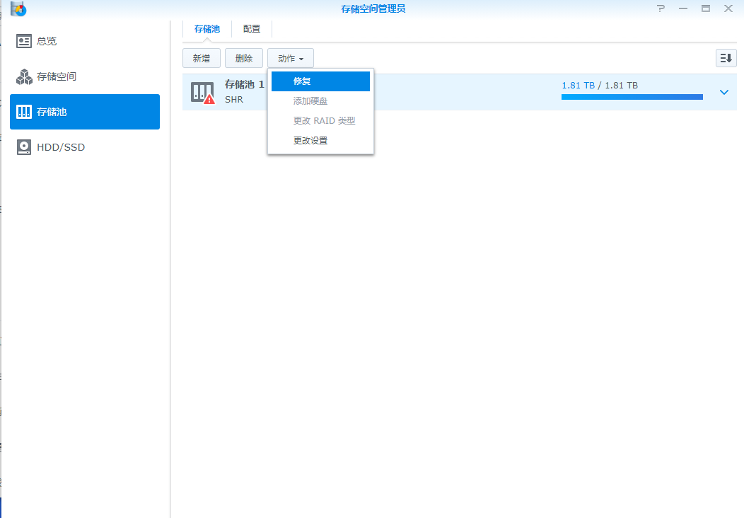 安装替换驱动器后,返回“存储池”页面并选择降级的存储池。