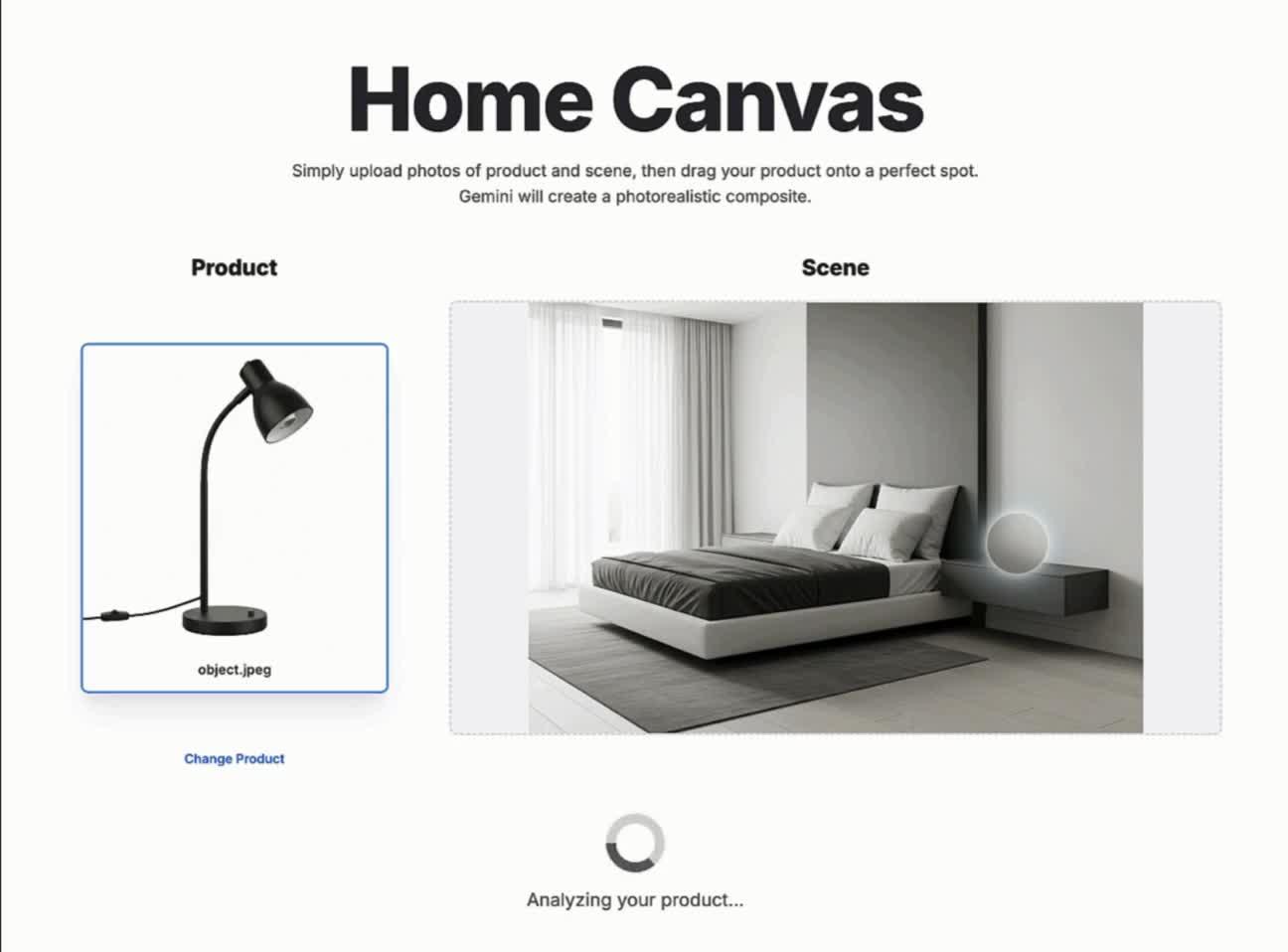 谷歌在 Google AI Studio 中构建了模板应用,支持通过拖拽产品至新场景,快速生成逼真的融合图像。