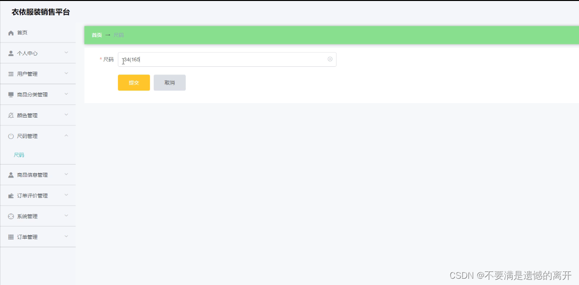 系统管理员可以对尺码进行添加,修改,删除操作。