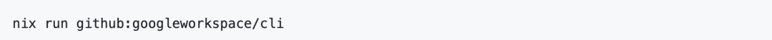 此外还提供了一个 Nix flake,地址为:github:googleworkspace/cli。