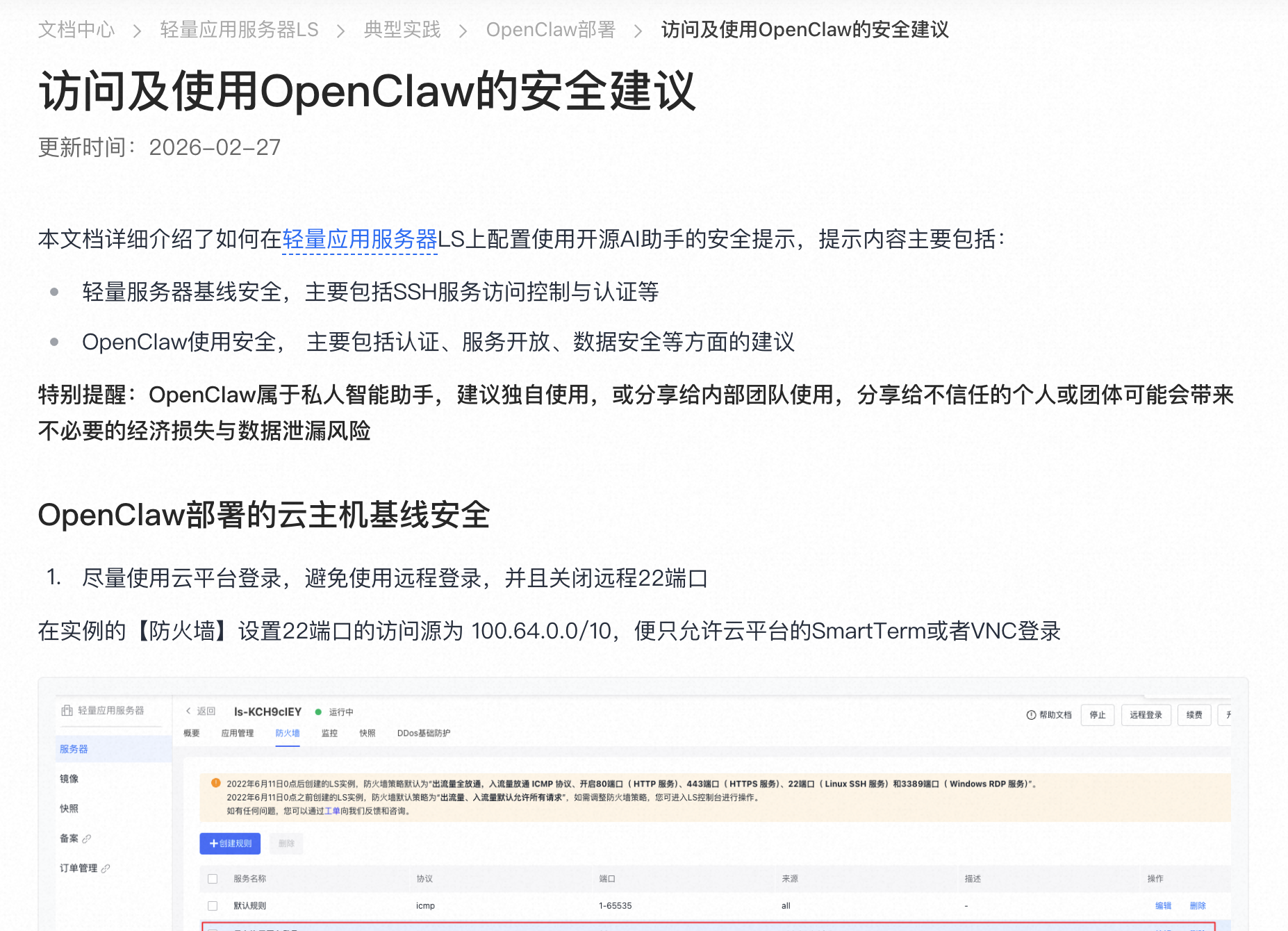 包括加强服务器基线访问控制,规范 OpenClaw 应用配置,如限制端口暴露,谨慎授权及管理第三方技能等建议。