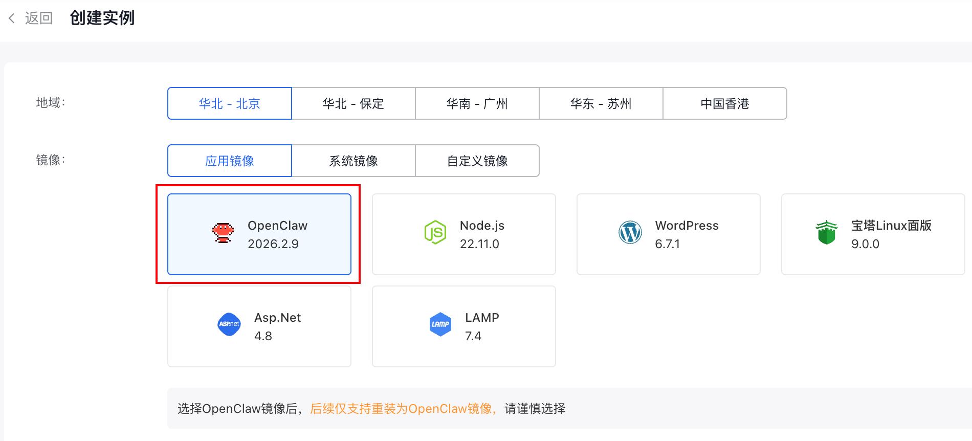 服务器实例可以选 OpenClaw 的应用镜像,专门给龙虾用。