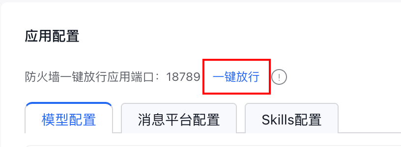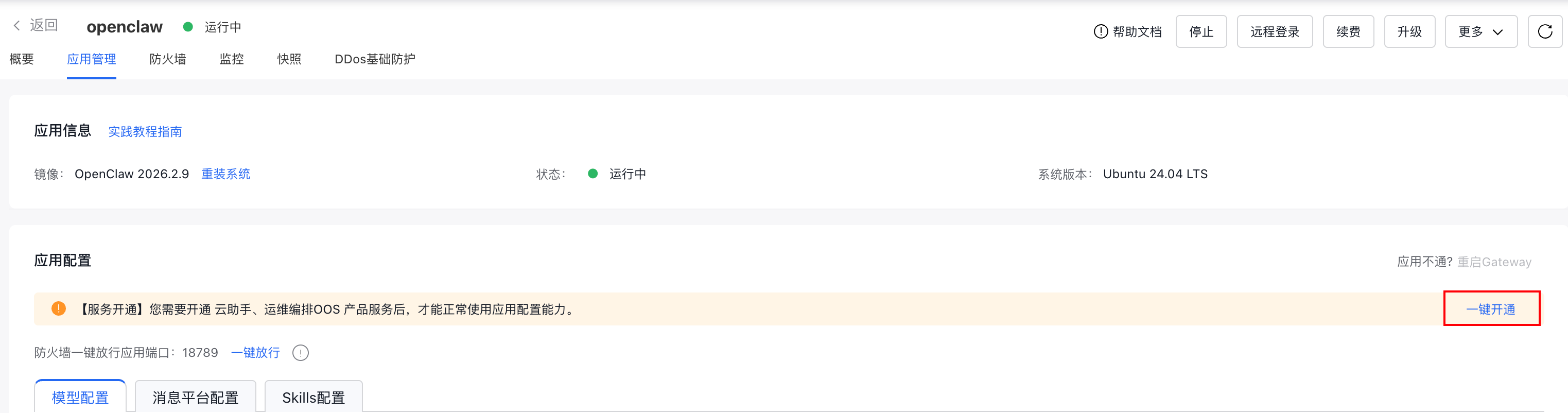 跳转进来,在应用配置这块,先点击一键开通按钮。