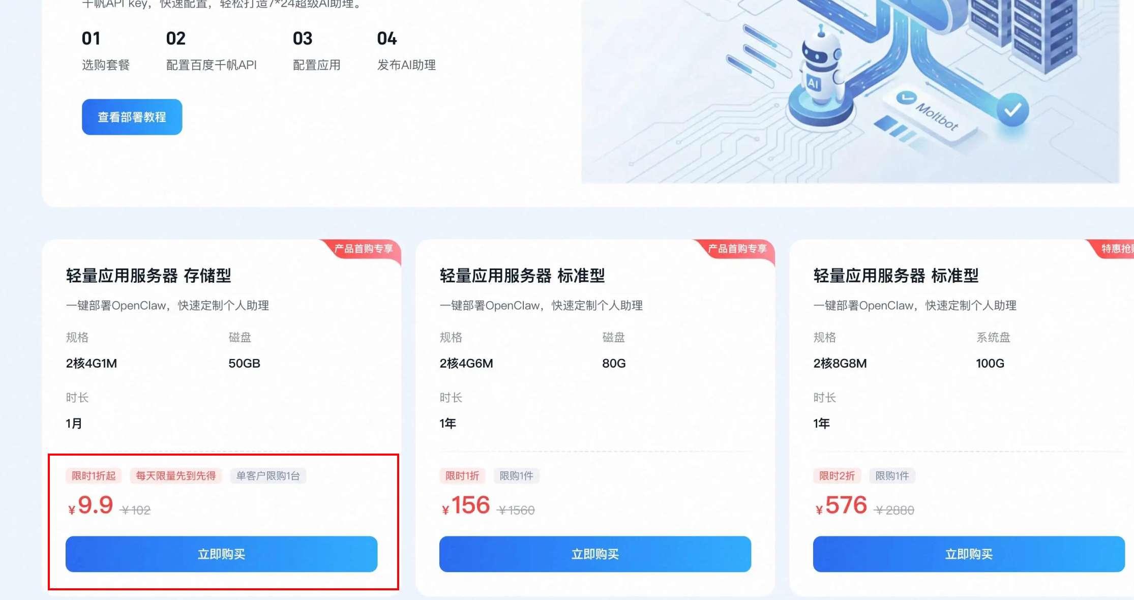 鱼塘是百度专门为龙虾定制的服务器,最低 9.9 元,可以一键部署龙虾。