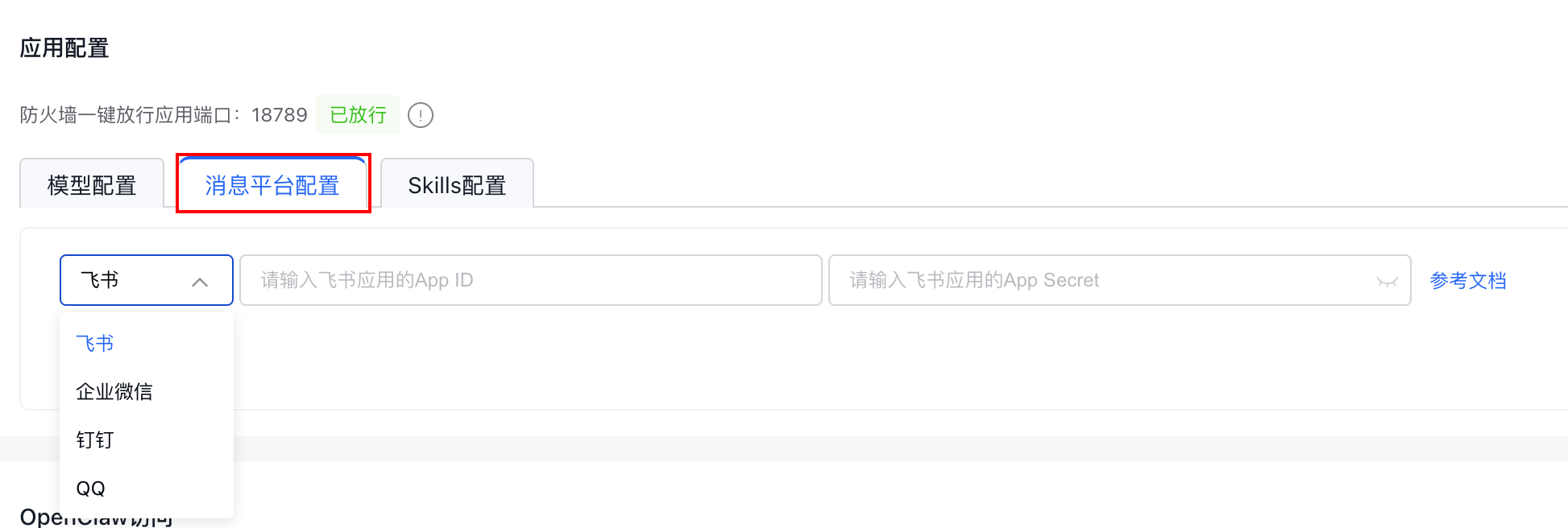 关键点就一步,在应用配置下的消息平台配置 App ID 和 App Secret 就好。