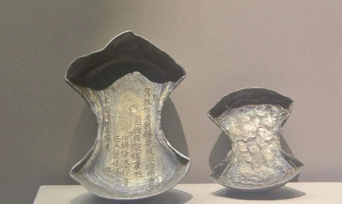 在元明时期,为了方便铸造,逐渐开始出现圆底的“元宝”,但是一直到明嘉靖年间,银货币的形制还是银铤、收腰翘边“元宝”、圆底“元宝并存的局面。
