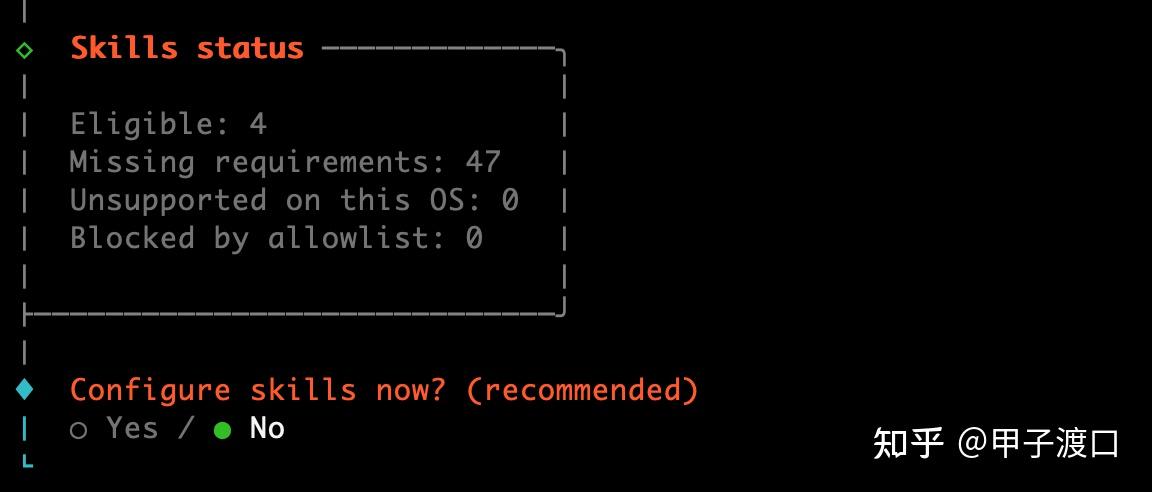 第五步,配置 Skill,按方向键的右键选择“NO”,先跳过。