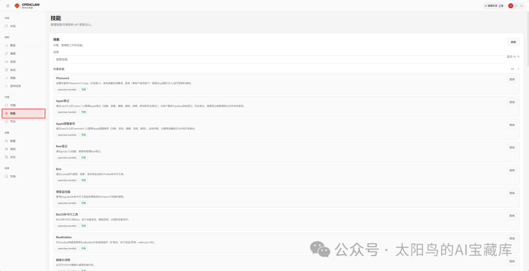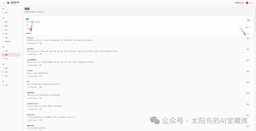 对于普通人来说应该如何配置自己的skills,我们可以直接在网页上禁用或者启用 Skill。