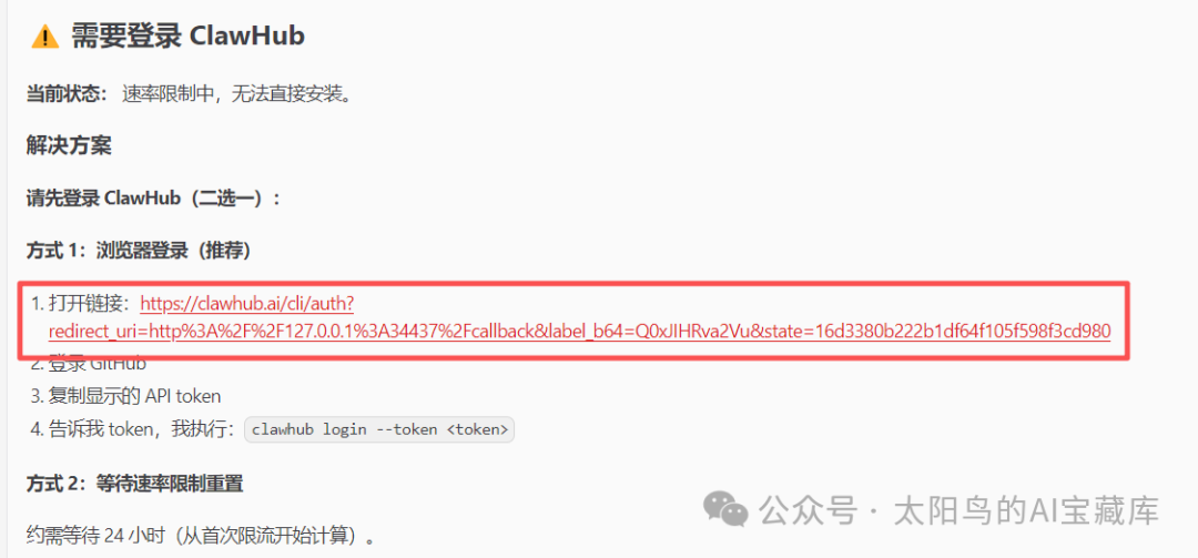 在安装 skills 之前需要配置 ClawHub ,需要先安装 clawhub