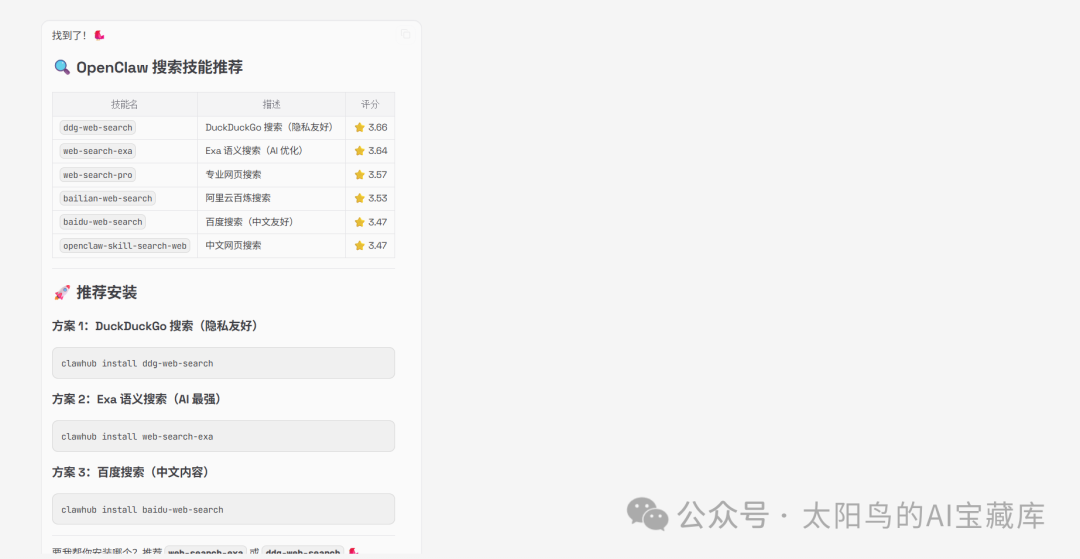 没有联网搜索的AI助理,就像没有窗户的房间——只能依赖训练数据里的旧知识,问“今天天气怎么样”都得瞎猜。装上联网搜索相关的skills,你的OpenClaw就能实时获取最新信息。