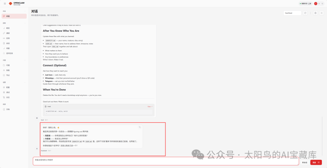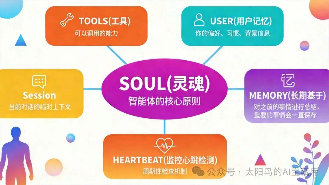 - SOUL(灵魂):智能体的核心原则,比如“不编造信息”、“不给假新闻”