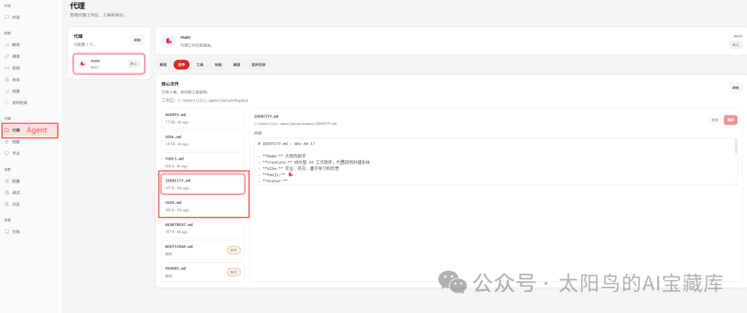 回复这句话后他会把对应的内容写到 Agent ,下面的文件夹中。如果后续自己想修改只需要去修改对应的文件夹就好了。