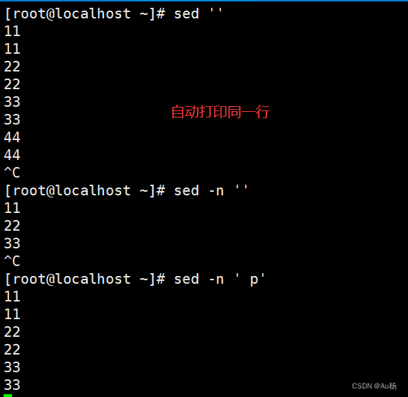 sed ‘ ’交互模式输入一行,自动打印一行相同的