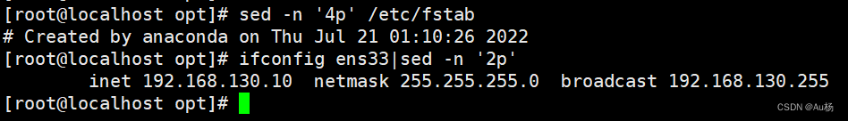 [root@localhost opt]# ifconfig ens33|sed -n '2p'