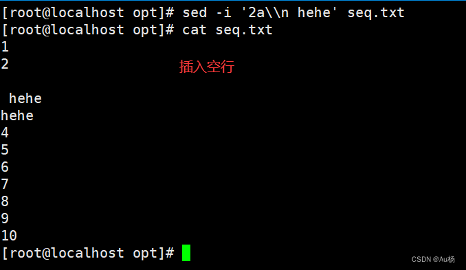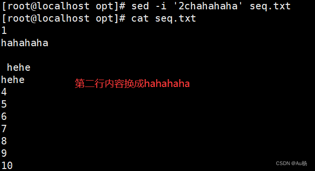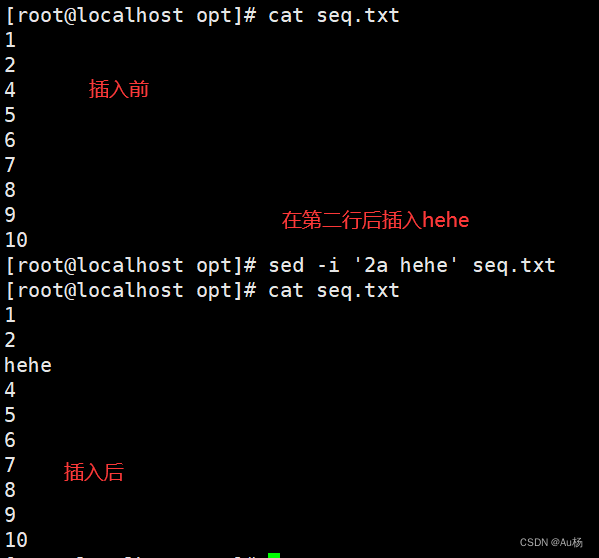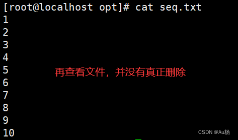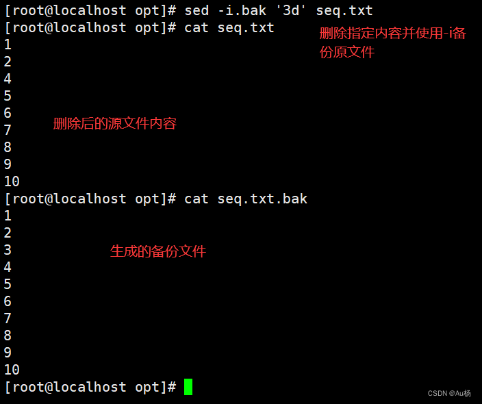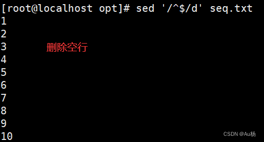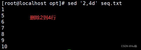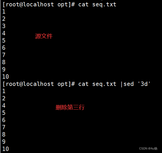 [root@localhost opt]# cat seq.txt |sed '3d'