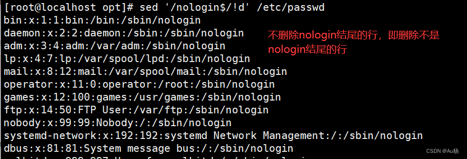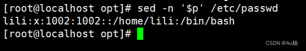 [root@localhost opt]# sed -n '$p' /etc/passwd