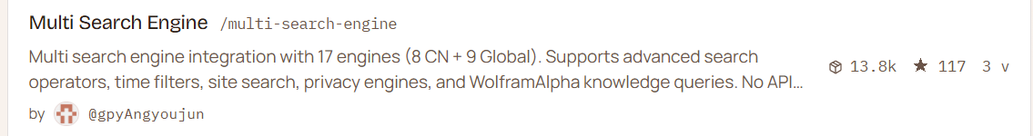 下面介绍一下比较好用的搜索类Skill或者MCP汇总,可以挑选喜欢的安装一下: