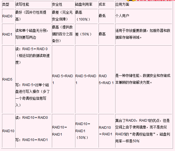 最常用的四种RAID为 RAID 0、RAID 1、RAID 5、RAID 10,下面以图解的方式解释RAID的特点和区别。