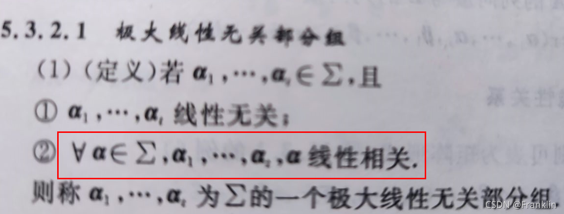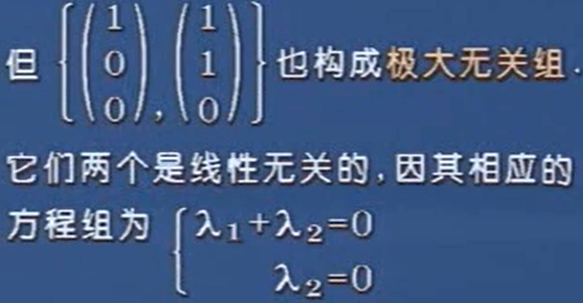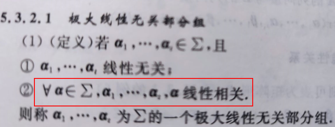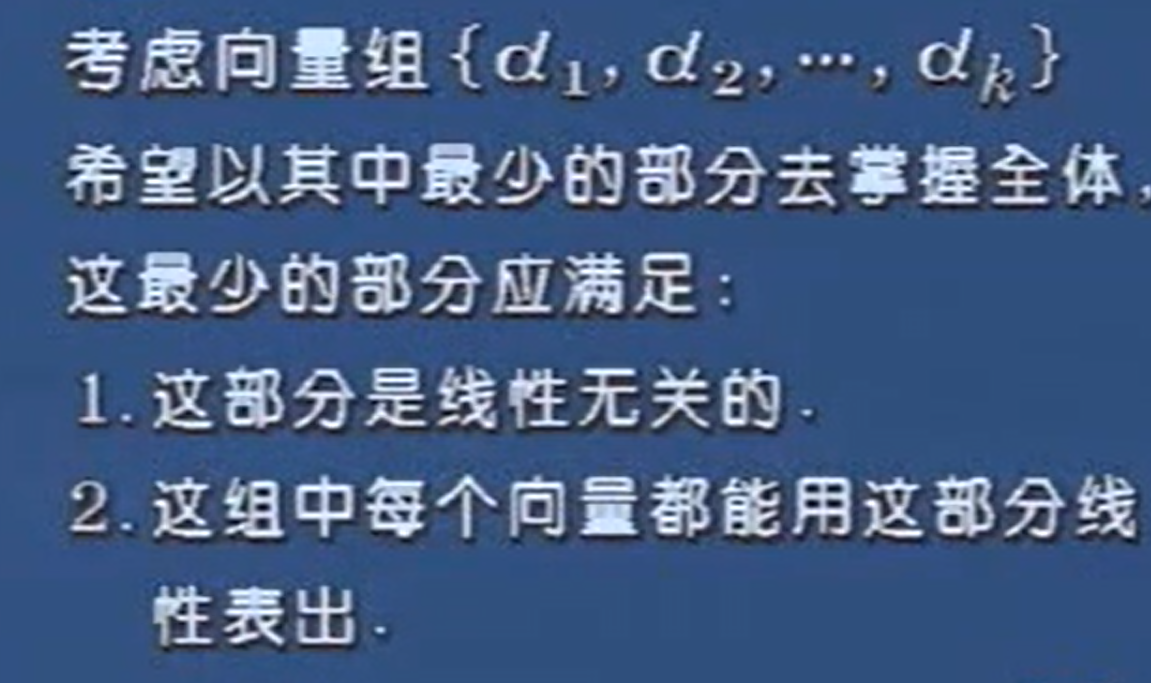 【案,极大线性相关组,其实就是找到最简答的表述向量关系的方程组。类似于,我们生活中,遇到了很多问题,比如,打篮球,要验证哪种篮球比较好,我们需要在无数种篮球的数据中,找到本质上能反应篮球特征的数据来分析,因为,我们只需选一个皮的篮球,一个橡胶的篮球,一个塑料的篮球来研究,而不需要把市场上所有篮球来研究了。