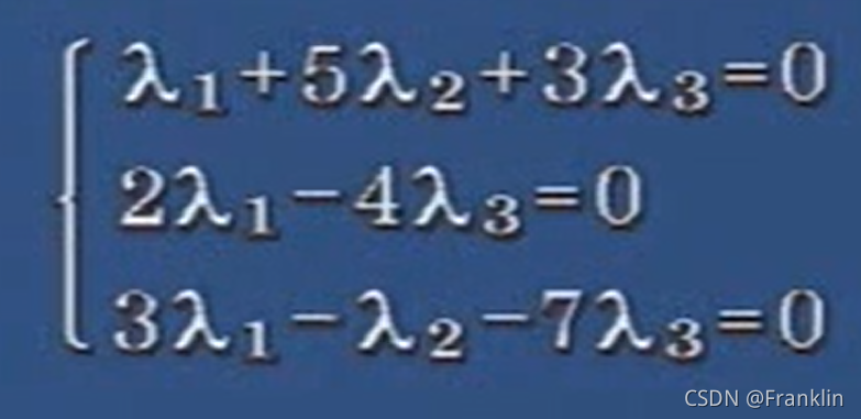 再次,在数学分析里面,所有的数据都没有给出权重,都是平等的,那么我们就可把互为表述的向量都移动到左边,右边留为0,左边就已经向量构成了一个矩阵。