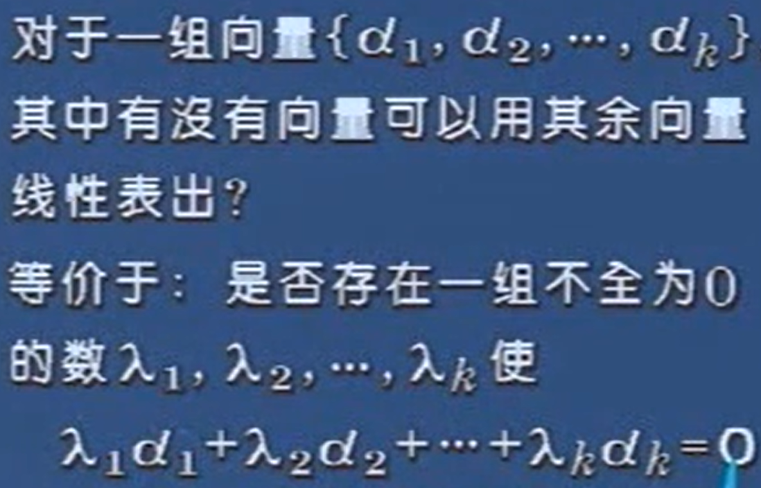 也就是这个线性方程组,有没有0解。【如果有解,那么就是可以互为表述,那么,既然可以互为表述,那么就可以减少方程中向量的个数,从而简化向量方程组。】
