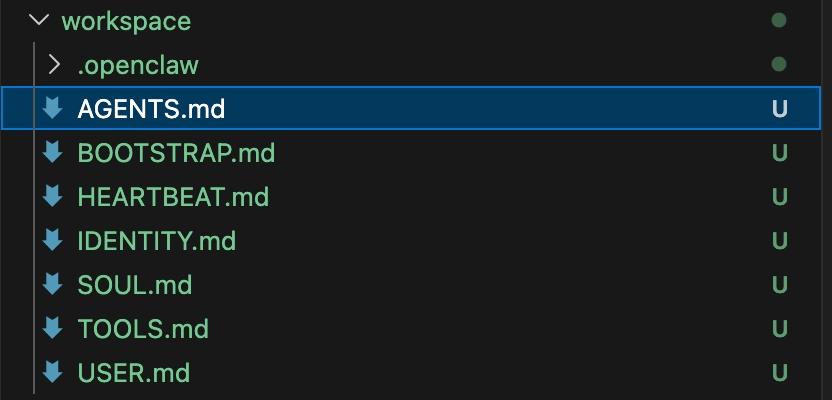 每个Agent都有其对应的workspace,如图是一个Agent最核心的配置文件。其各文件的含义如下: