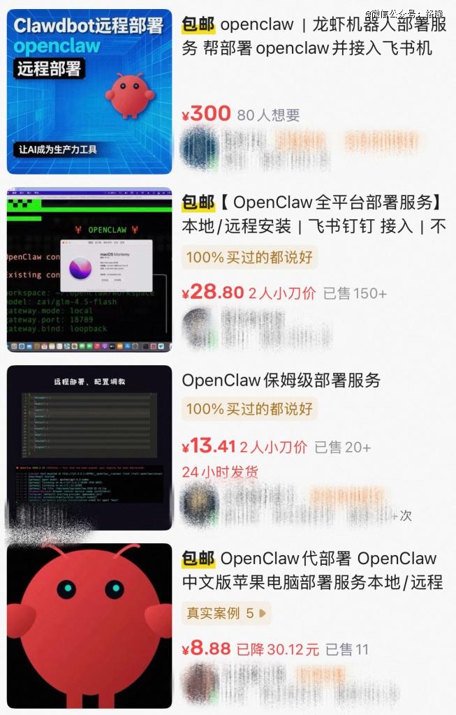 在国内什么都能买到的某二手平台上,OpenClaw的远程部署已经热火朝天,上门安装费更是已经卷到300元起步。