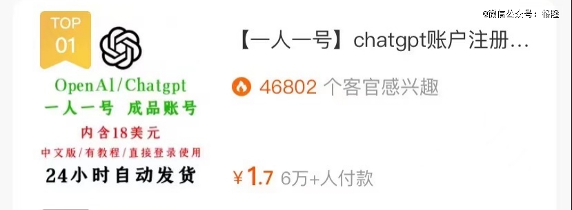 于是,帮人代注册账号的卖家成为了靠着ChatGPT赚到钱的*波人。
