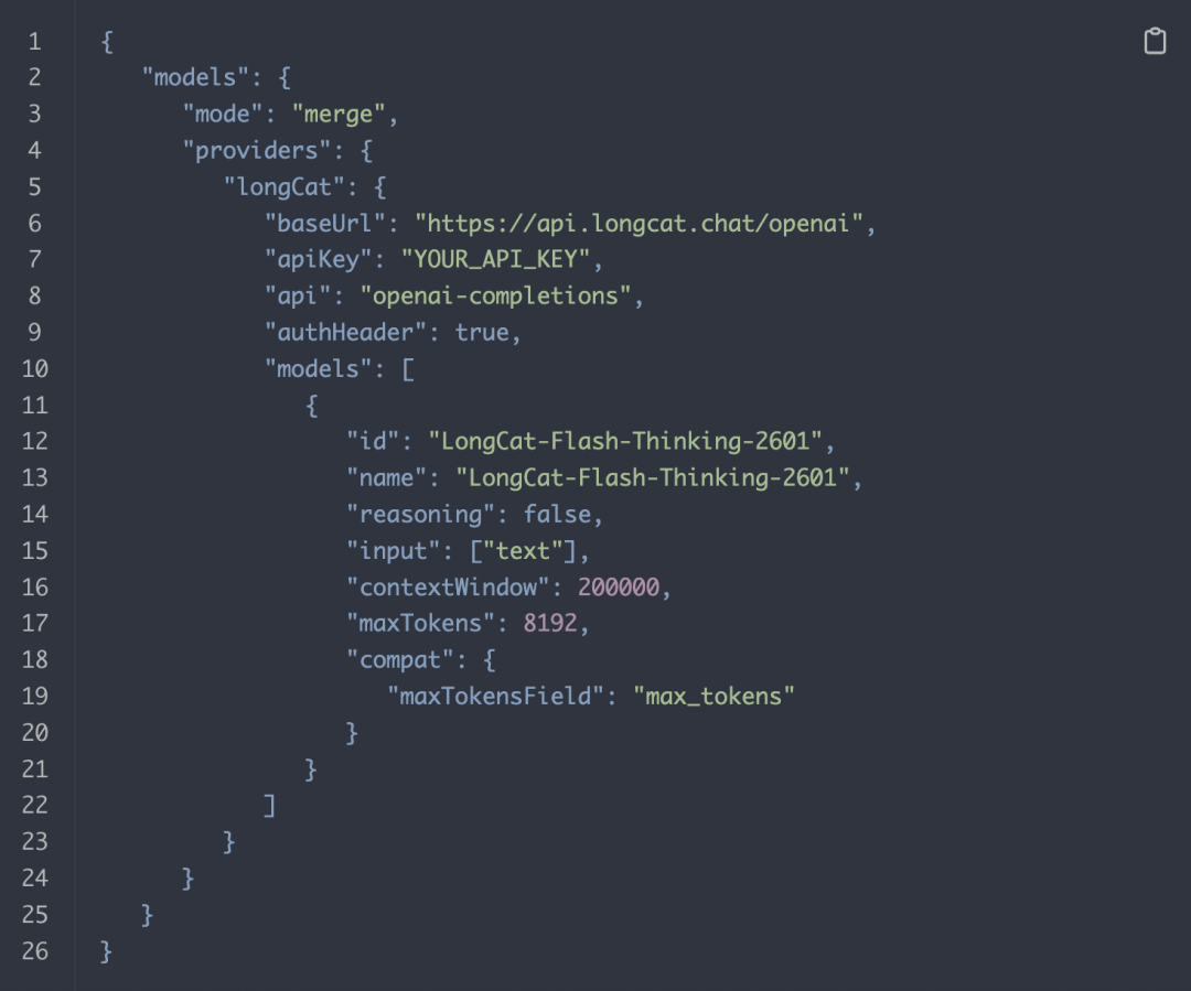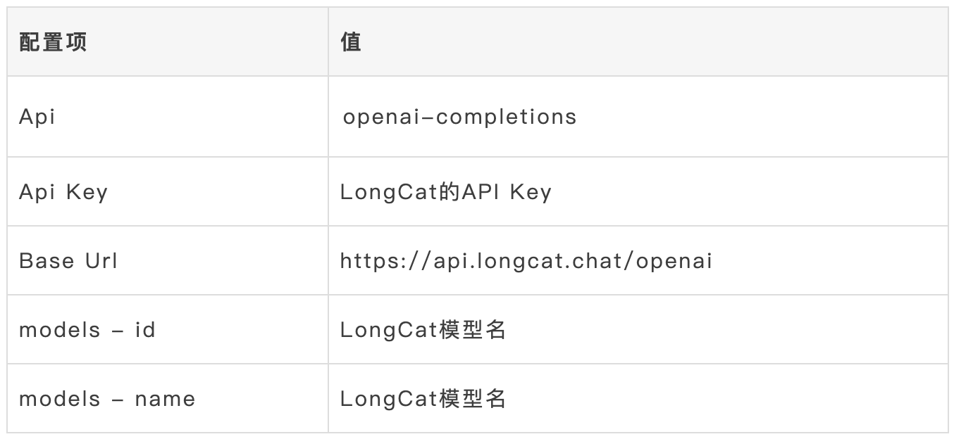 启动后我们可以通过修改自定义配置来接入LongCat模型。