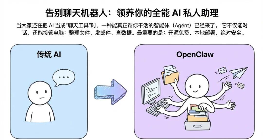 而 OpenClaw 不一样。它是一位会动手、能落地、直接接管你电脑工作的专属助理。