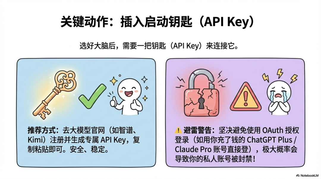 建议:用独立的 API Key,不要用你的个人付费订阅账号的 OAuth。一定要用 OAuth 的话,用一个不重要的账号。