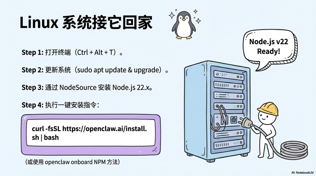 所以你可以先跳到 Step 5 试试直接装 OpenClaw。如果失败了,再回来从 Step 3 开始。